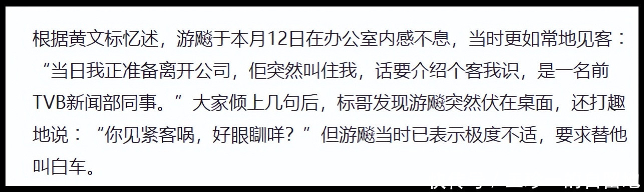游飚的好友黄文标接受港媒采访时透露了具体细节和死因。