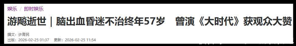 2月25日,港圈突传噩耗,知名港星游飚去世,终年57岁。
