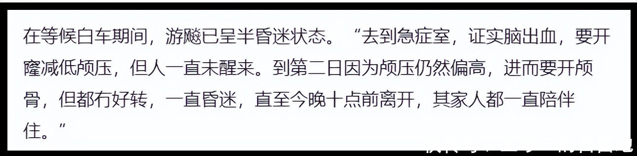 被送往医院后,游飚被证实脑出血,进行了开颅手术,但人一直没有醒来。