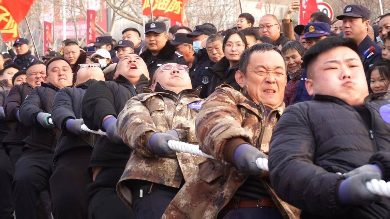 近日,太行东麓的平山县人民公园热闹非凡,两股热潮相映生辉、暖意涌动。一侧,“平山红”拔河超级联赛四强赛激战正酣,队员们紧握长绳、重心后倾,“团结起来,寸步不让”的呐喊震彻云霄,绳索上的红色标记在两队间反复拉锯,尽显“拧成一股绳”的拼搏韧劲;另一侧,新春年货节烟火气十足,炸年糕的焦香、手写春联的墨香与孩童追玩萌宠的笑声交织,勾勒出年味渐浓的热闹图景。