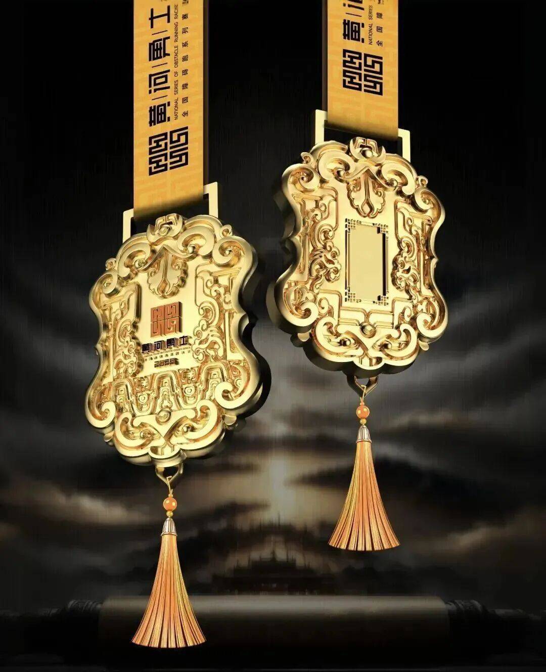 2026年黄河勇士儿童赛完赛奖牌,取古令牌形制,以端庄的形态致敬周朝礼乐文明。奖牌核心元素致敬国宝级文物“大克鼎”,婉转复刻的经典波曲纹,细腻生动;底部凝练的兽面纹,威严而不失亲和,寄托着对“小勇士”们无畏向前的守护与期许。